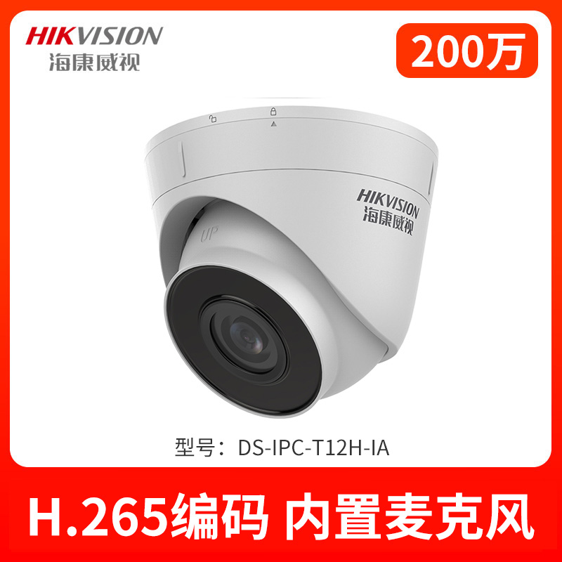 • 海康威視(HIKVISION)攝像頭200萬帶音頻監控套裝攝像機DS-IPC-T12H-IA/POE網絡監控紅外半球